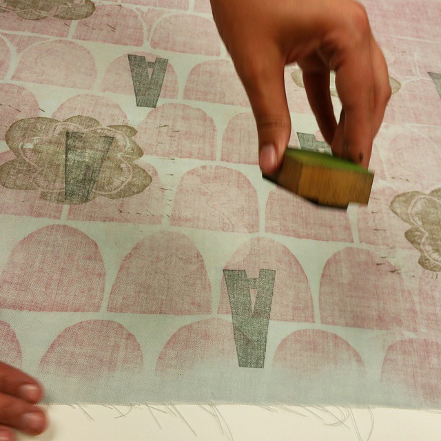 In this class, students will create richly coloured prints on fabric using linoleum, woodblocks, rollers, and letterpress blocks. We will cover some of the challenges of printing on fabric versus paper, and use pre-cut blocks and other print matrices to experiment with printing on fabrics both by hand and in a printing press. You will go home with a beautifully printed .5 metre x .5 metre square of fabric to enjoy as is or to use in future projects.