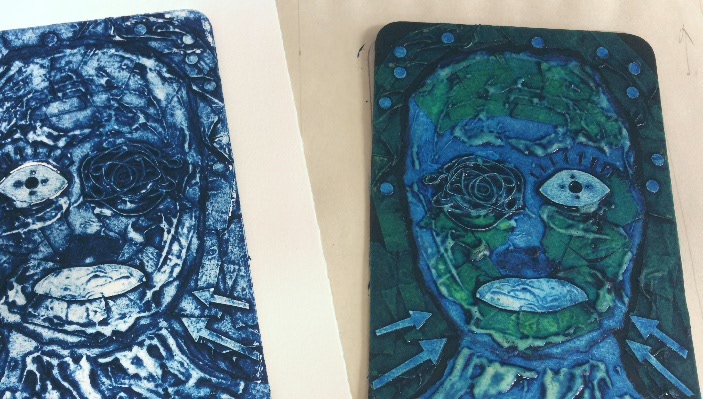 Collagraph is a printmaking method in which a collage is constructed onto a heavy card using paper, glue, and sand or grit, and then used as a matrix for printing. It’s a satisfyingly tactile way to create a printing plate, and textures as subtle as simple torn or cut pieces of paper can achieve beautifully rich and varied printed marks. In the first week we will focus on creating the plate, and in the second week you will learn how to ink and press your plate and will make an edition of at least four prints.
