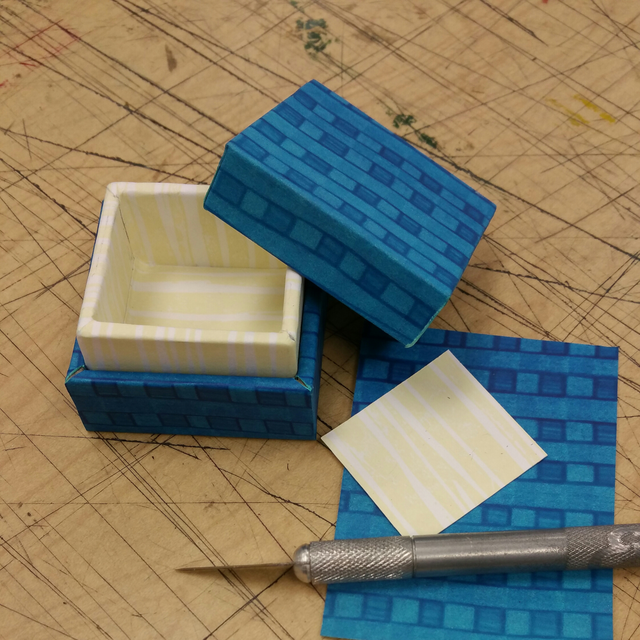 In this class you will learn how to make tiny lidded boxes for all of your precious little objects. We will cover measuring and planning your box, building the box parts, and covering the box with decorative paper. No experience is necessary.
