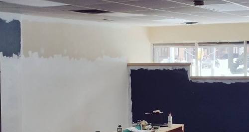 On Friday afternoon the first coat of turquoise went up: