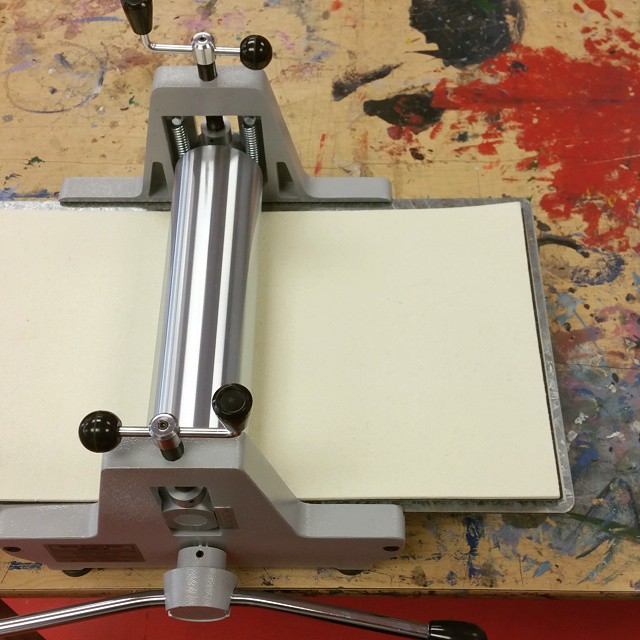 This wee etching press will tide us over for teaching classes and making small prints until we can get our issue sorted with the big press. It’s definitely an economy model, but it does the job, and we’ve used it in a class already. And it’s so easy to pick up and move around the studio!