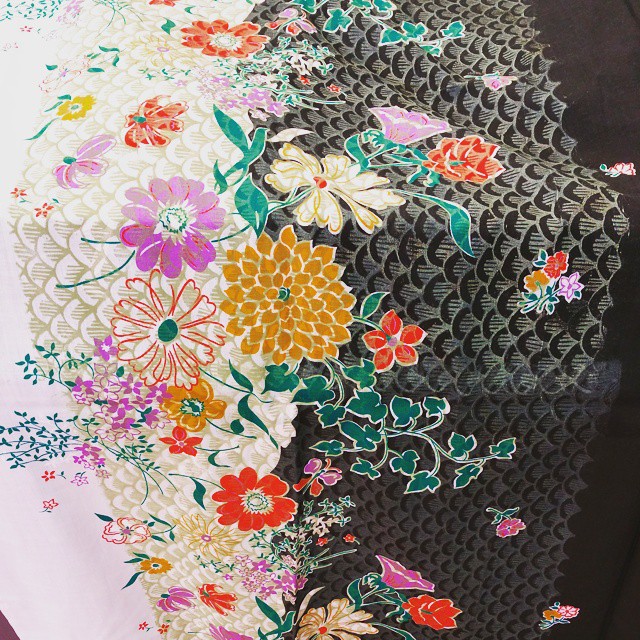 Printing linoblock scallops on top of floral fabrics for dresses!